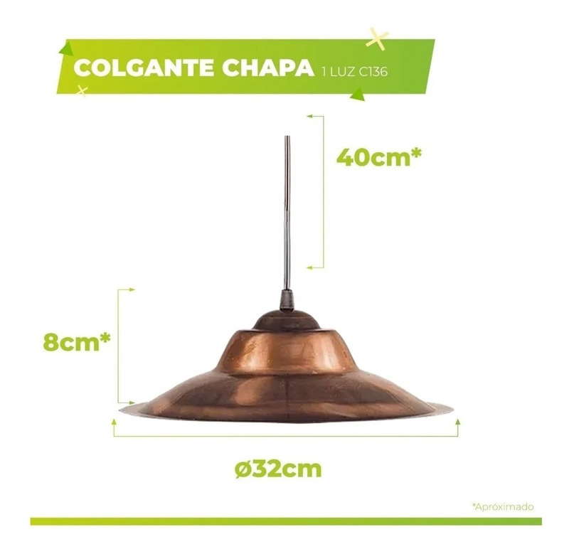 Lampara Colgante Ferrolux C-136Cob Cobre Chapa E-27 32cm