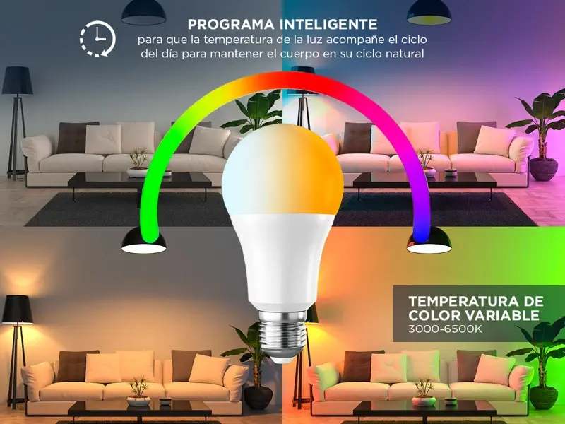Programa inteligente para que la temperatura de la luz acompañe el ciclo del día para mantener el cuerpo en su ciclo natural