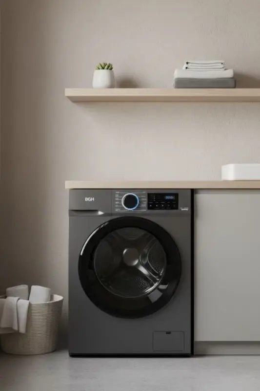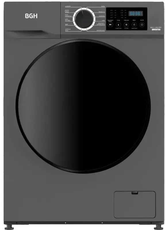 LAVARROPAS AUTOMATICO CARGA FRONTAL BWFE08S24AR INV 8K 1400 RPM GRIS BGH