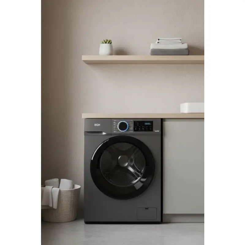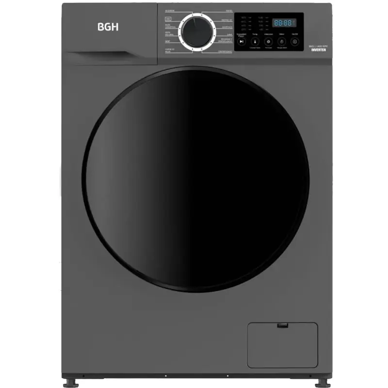 LAVARROPAS AUTOMATICO CARGA FRONTAL BWFE08S24AR INV 8K 1400 RPM GRIS BGH