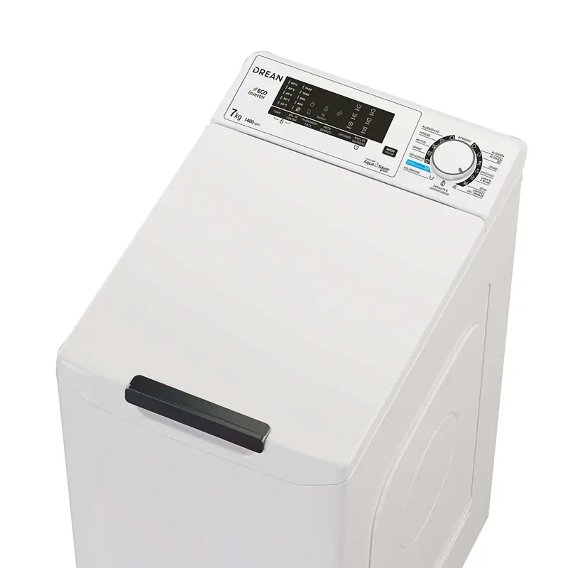 Ecoinverter. Capacidad de 7 Kg. Color blanco. Velocidad de 1400 RPM. Eficiencia A. Sistema de lavado europeo. 15 programas. Display LED con perilla. Bloqueo para niños. Sistema autobalance. Carga autoadaptativa. Lavado rápido 14, 30 y 44’.