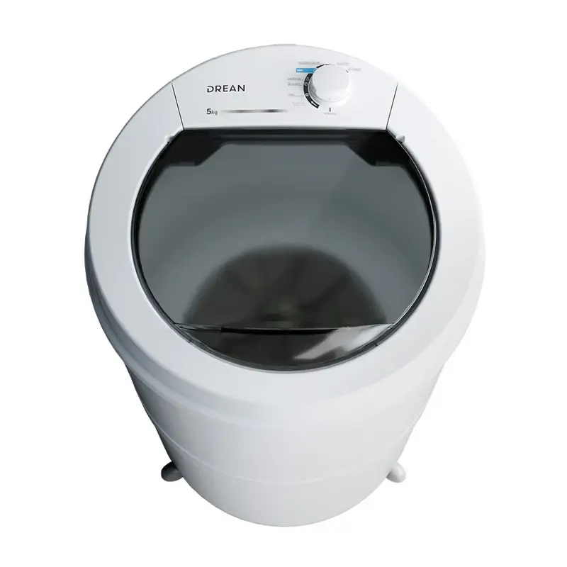 Lavarropas semiautomático de carga superior. Color blanco. Capacidad de lavado de 5 Kg. Posee 7 programas de lavado: Algodón, Algodón sucio, Algodón muy sucio, Color, Mixto, Sintético, Lana. Sistema de lavado oriental. Comando superior con perilla. Cuenta con tapa transparente para mayor visibilidad del lavado. Gabinete redondo de polycron blanco. Carga y descarga de agua manual. Sin centrifugado. Motor termoprotegido. Origen Argentina.
