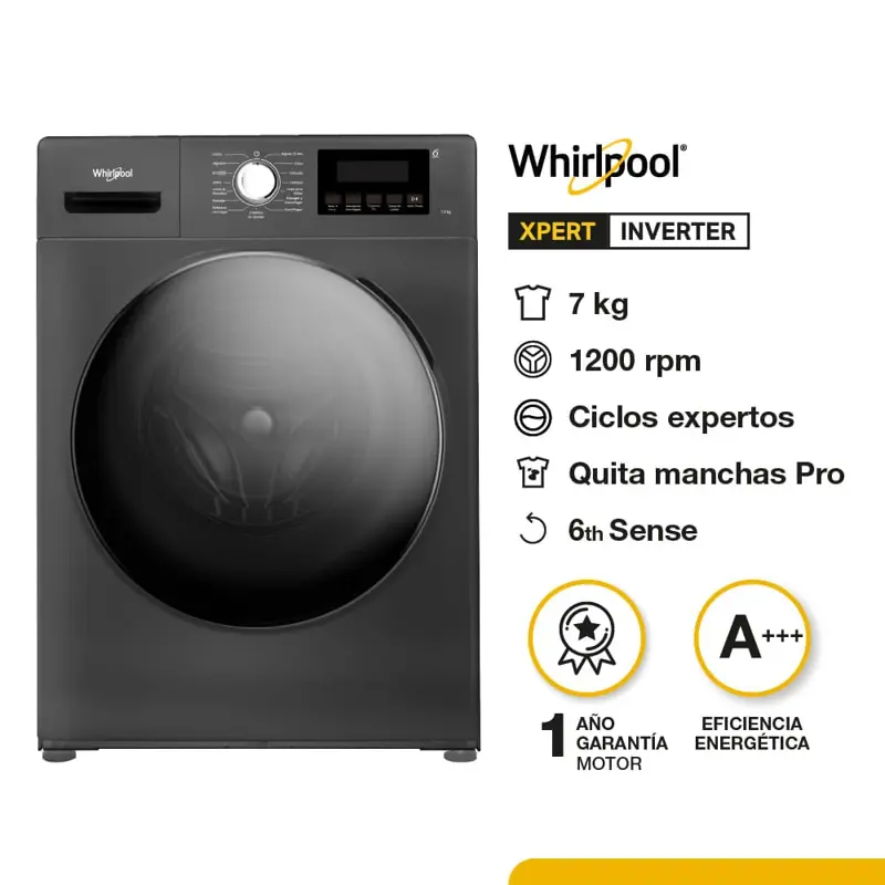 Familia Carga FrontalCapacidad Neta 7KGColor TitaniumMedidas del producto (largo x ancho x prof) 850 x 600 x 580 mmMedidas del producto embalado (largo x ancho x prof) 910 x 683 x 635 mmPeso neto (kg) 63Volumen del tambor (L) 55Load 40'HC'' 156RPM 1200Puerta GlassPanel Display LEDNiveles de agua AutomáticoTemperaturas 4 (0-30-60-90)Ciclos 15Programación diferida SiTambor Stainless StealMotor InverterGarantía Origen ChinaEficiencia Energética A
