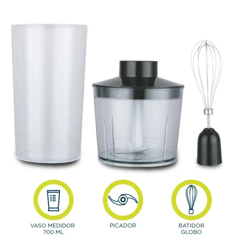 - Vaso picador desmontable y lavable, ideal para picar verduras, frutos secos y más.