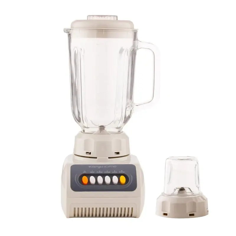 Marca KANJI HOME Modelo KJH-BL0600LA Capacidad 1,5 Lts Potencia 600w Incluye Vaso de vidrio Jarra de vidrio accesorio picador Cuatro velocidades + Pulse