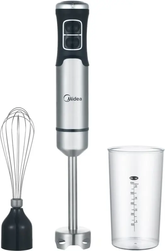 Controla la velocidad a tu gustoGracias a su pulsador y regulador de velocidad, podrás adaptar el funcionamiento de la licuadora a las necesidades de cada receta, obteniendo siempre resultados perfectos. Con la Licuadora de Mano HB-1100X2AR1 850W MIDEA, la cocina será más simple y deliciosa que nunca.Diseño elegante y funcionalEl modelo HB-1100X2AR1 cuenta con un diseño moderno en color plata que se adapta a cualquier cocina. Además, su cuchillo de acero inoxidable garantiza durabilidad y eficiencia en el procesamiento de alimentos.Disfruta de la potencia y versatilidad en la cocina con la Licuadora de Mano HB-1100X2AR1 850W MIDEACon nuestra licuadora de mano, podrás mezclar, batir, triturar y preparar deliciosas recetas de forma rápida y sencilla. Gracias a sus 850W de potencia, podrás obtener resultados perfectos en pocos minutos.Práctica y ligeraCon un peso de apenas 0,8kg, esta licuadora de mano es fácil de manejar y almacenar. Su vaso de plástico con capacidad de 0,6L te permite preparar tus recetas favoritas sin complicaciones.