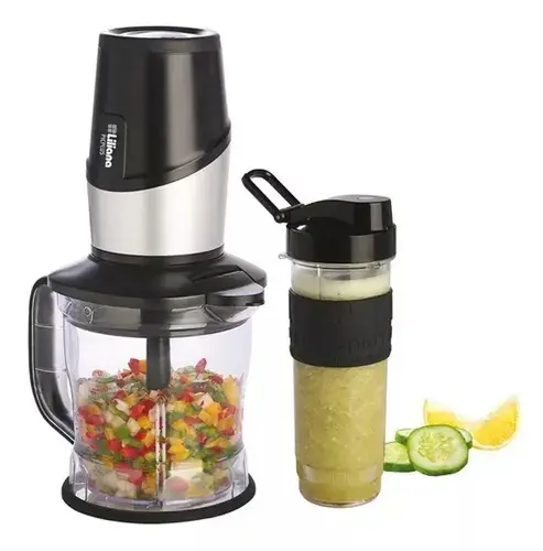 LICUADORA PICADORA LILIANA PICPLUS AM312 1.2 LTS 700 WATTS AM312 Con la licuadora portátil Liliana AM312 prepara tus licuados donde sea que estés, y tendrás colaciones o meriendas nutritivas, llenas de sabor en cualquier momento del día. PRACTICA Y SEGURA Su cierre de seguridad impide accidentes por descuidos y preserva la limpieza de tu cocina al evitar derrames. TODO LO QUE MÁS TE GUSTA Es apta para moler hielo en segundos y preparar smoothies refrescantes en los días de calor. Además, podes hacer tus propios tragos de coctelería en casa sin necesidad de ir a un bar. Ahora el bartender ¡sos vos! SIEMPRE LIMPIA Su cuchilla removible asegura que el lavado sea impecable y evita la acumulación de residuos que podrían perjudicar el sabor de los alimentos. CARACTERÍSTICAS: • Jarra de 1,2 Lts de capacidad con pico vertedor y tapa hermética. • Doble cuchilla de acero inoxidable. • Botella licuadora portable de 570 ml de capacidad con tapa hermética y pico deportivo. • Cuchilla desmontable. • Ideal para hacer deporte o llevarla de viaje. • Ocupa poco espacio. • Base antideslizante. • Potencia: 700 watts. ESPECIFICACIONES:- Capacidad en volumen: 1.2 L- Voltaje: 220V- Material de la jarra: Plástico- Potencia: 700 Watts- Es industrial: NO- Accesorios incluidos : Botella portátil 570 mL, Tapa hermética DIMENSIONES:- Alto: 23.6 cm- Ancho: 19.4 cm- Profundidad: 26 cm- Peso: 2.3 Kg
