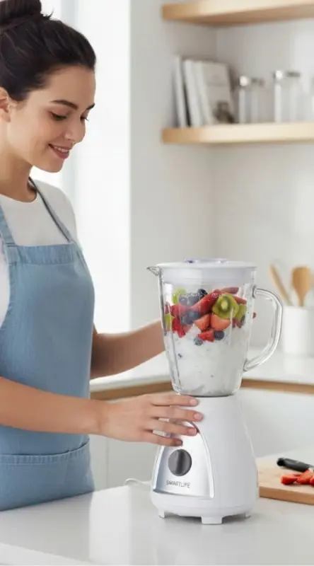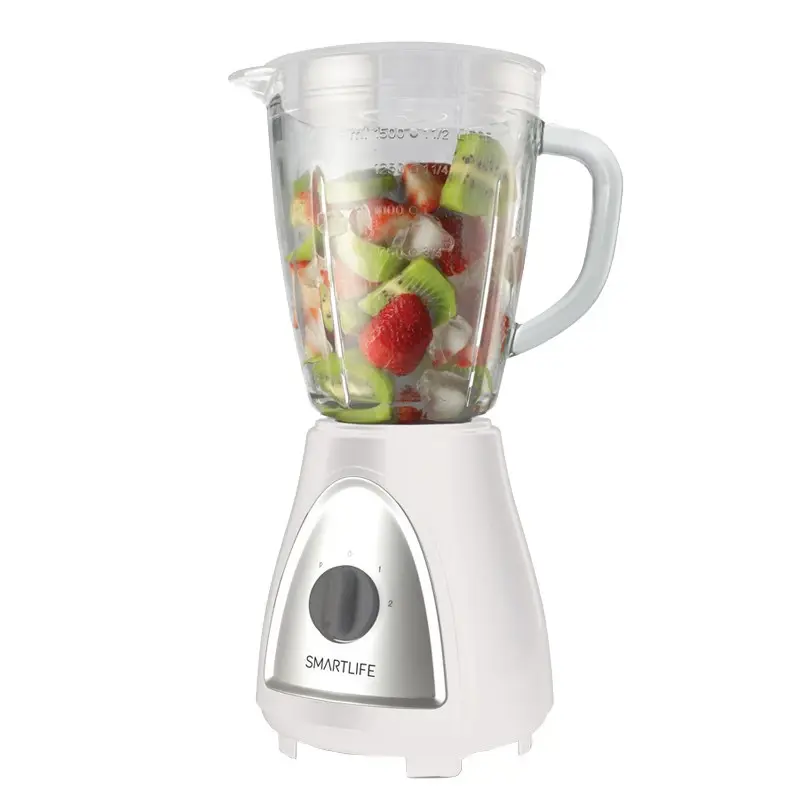 Funciones.Gracias a su vaso de 1.5 litros resistente es posible realizar todo tipo de receta. Con 2 velocidad y el pulsador puedes seleccionar la intensidad que deseas para el tipo de alimento a procesar.Ahora más seguro, gracias a su base antideslizante, podrás usarlo de forma segura sin que la licuadora caiga debido a las vibraciones.Características.La licuadora SL-BL1008WPN de SmartLife cuenta con una potencia de 400 W es ideal para hacer distintos tipos de recetas gracias a las funciones que posee. Con cuchilla de acero inoxidable que son superresistentes y de gran fuerza para picar todo lo que sea necesario.Diseño.Con una tapa dosificadora puedes servir de forma directa una vez que el preparado este listos o puedes extraerla en caso de que necesites colocar el contenido en otro recipiente. El diseño en color blanco brinda un toque moderno y elegante.