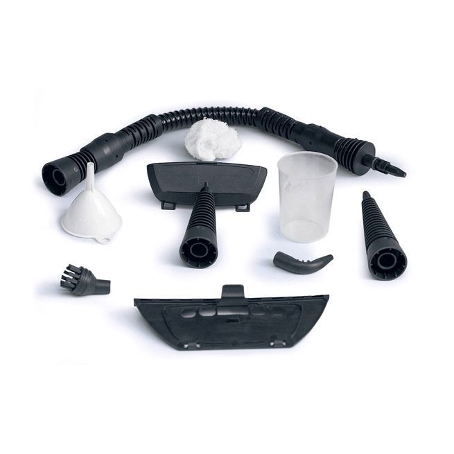 Tasa de medir, Embudo, Herramienta de tapicería, Paño de toalla, Boquilla de chorro, Boquilla doblada, Tubo flexible de 1x55cm, Almohadilla de microfibra, Escobilla