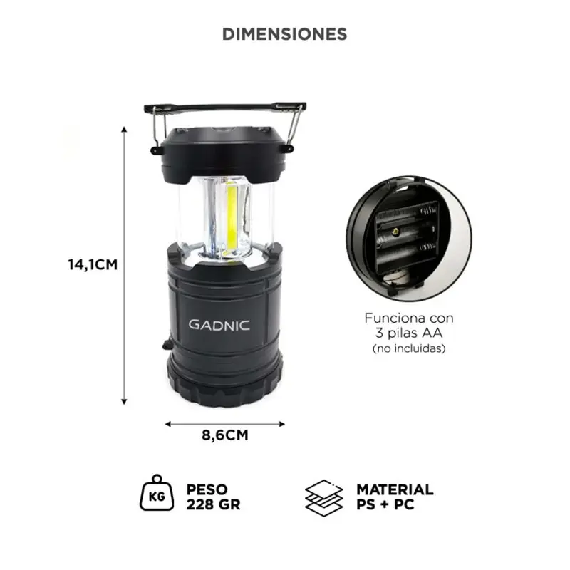 No requiere cargadores ni cables. Funciona con 3 pilas AA (no incluidas).. Una opción práctica para viajes, campings o emergencias donde no hay acceso a electricidad.