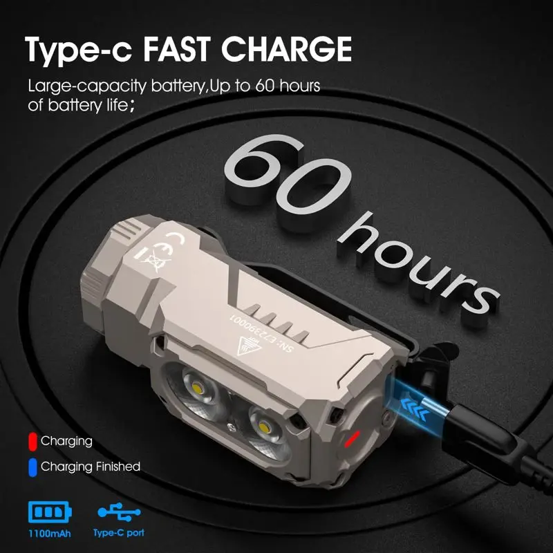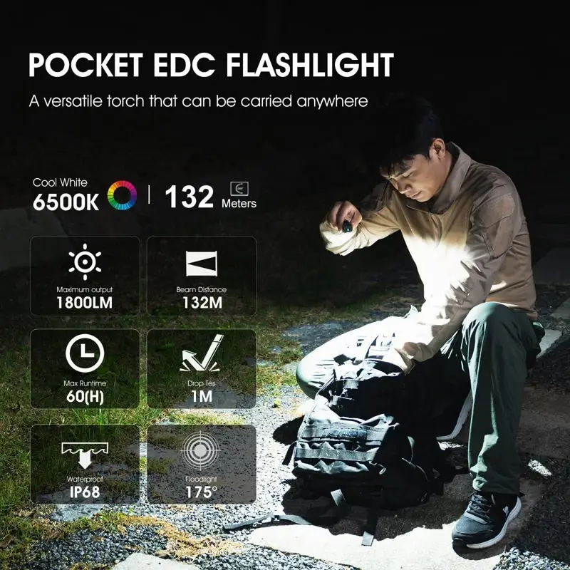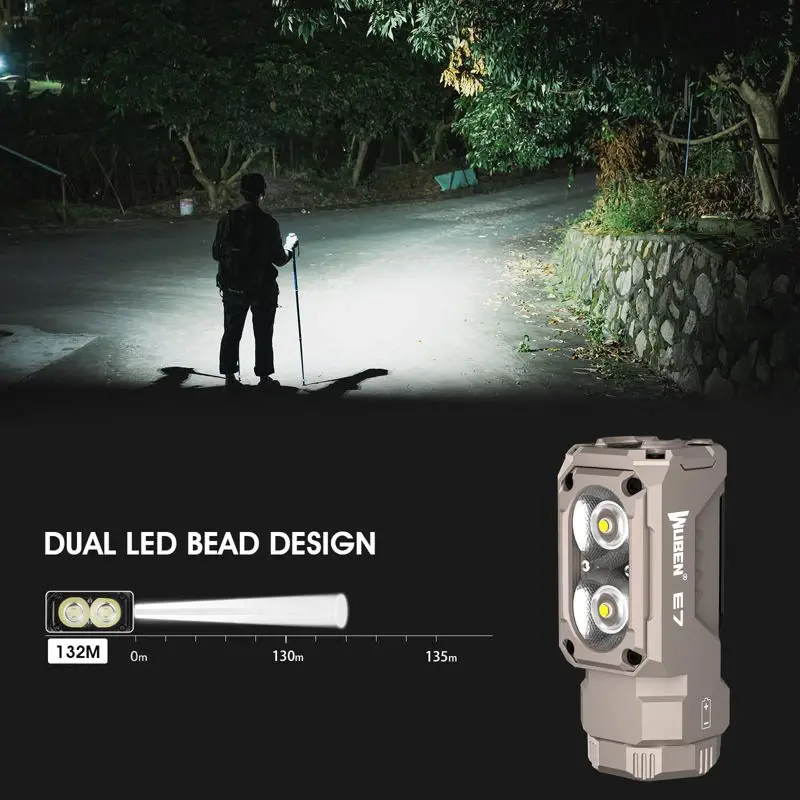 - Linterna EDC personalizada: WUBEN E7 es una linterna EDC multiusos que muestra tu personalidad. La apariencia es elegante y moderna, equipada con perlas de lámpara LED P9 de alta reproducción cromática de 6500 K, que pueden proporcionar una alta salida de hasta 1800 lúmenes y un reflector ultra gran angular de 175°. También es un faro muy estable; solo necesitas colocarlo en la diadema ergonómica; liberando tus manos mientras proporciona una luz estable.