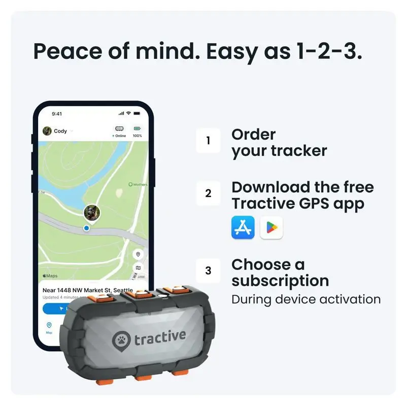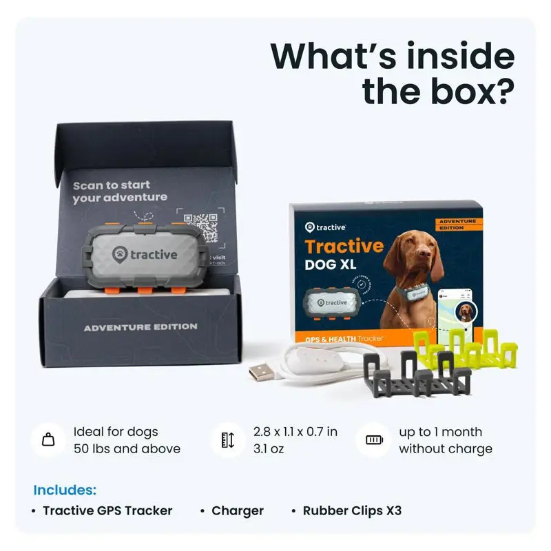 Rastreador GPS y monitor de salud Tractive XL para perros (más de 50 libras), rastreador de ubicación GPS para mascotas líder del mercado | alertas de bienestar y escape | Resistente al agua | Funciona con cualquier collar (edición Adventure)