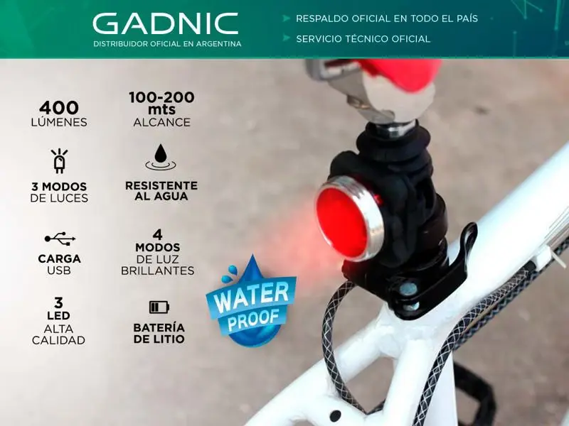 Luces Para Bicicleta Led Recargables Gadnic kit x 2 Impermeables