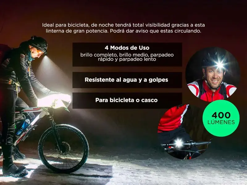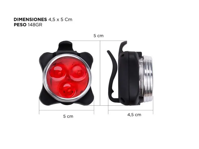 ¡Nuevas Luces Led Gadnic Para Bicicleta! Fácil instalación y alta compatibilidad : Solo un paso de hebilla, la correa de montaje de silicona a su bicicleta u otros objetos como casco, bolsa, Botas de ski y así sucesivamente. Amplia aplicación : No solo es una luz de bicicleta para montar, sino también una linterna para uso de emergencia, senderismo, caminar, cortes de energía u otras actividades que necesitan iluminación. El diseño compacto también se puede utilizar en mascotas, casco, bolsas. 4 modos de luz brillantes : Tanto la luz delantera como la luz trasera incorporadas en 3 LED de alta calidad, alto brillo puede iluminar toda la carretera. 4 modos de luz (brillo completo, brillo medio, parpadeo rápido y parpadeo lento) para cambiar.