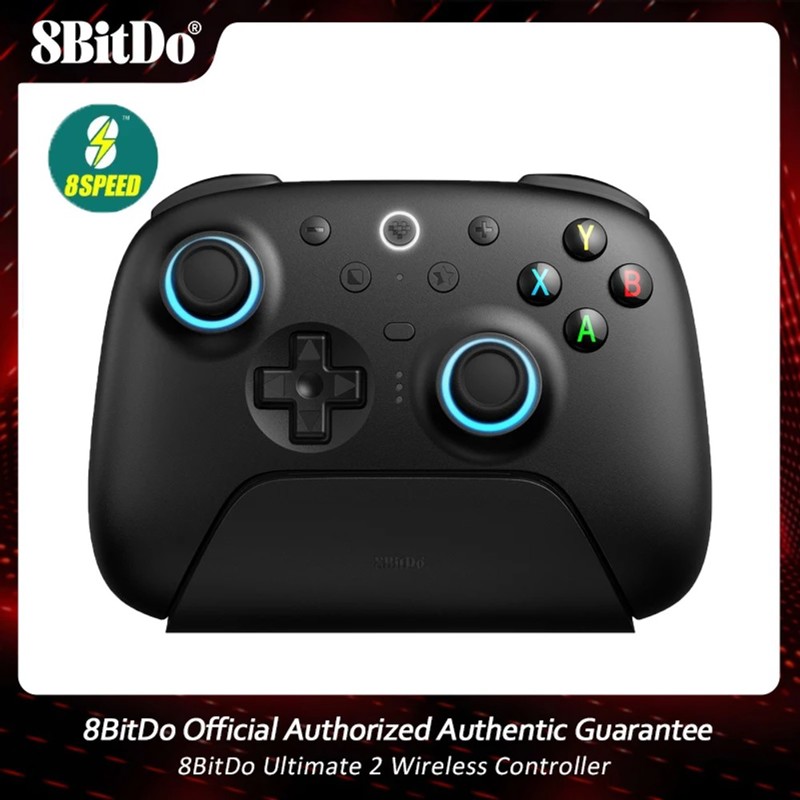 Controlador inalámbrico 8BitDo con base de carga integrada. Incluye joysticks TMR, ofreciendo mayor sensibilidad y precisión. Equipado con activadores de efectos Hall para un control óptimo y parachoques rápidos remapables para reacciones veloces.Cuenta con control de movimiento de 6 ejes personalizable y tecnología inalámbrica 8Speed para una conexión estable y de baja latencia. Compatible con conexión 2.4G mediante adaptador USB-C, posee anillos de joysticks resistentes y botones traseros de nivel profesional.Personalizá el mapeo de botones a través de 8BitDo Ultimate Software V2. Compatible con clips para juegos móviles (se venden por separado). Disfrutá de una experiencia de juego inmersiva con luz RGB ajustable.