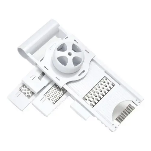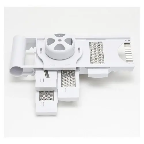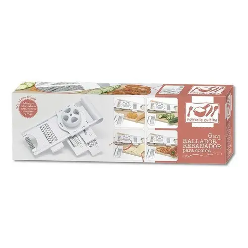 * Rallador / Rebanador para Cocina.* 5 cuchillas intercambiables de acero inoxidable* Medidas: 40 de largo x 14 de ancho x 5 de alto* Facil, Rapido Y Seguro.* Ideal Para Rallar, Rebanar Frutas, Verduras, Chocolates Y Mas.Origen: China