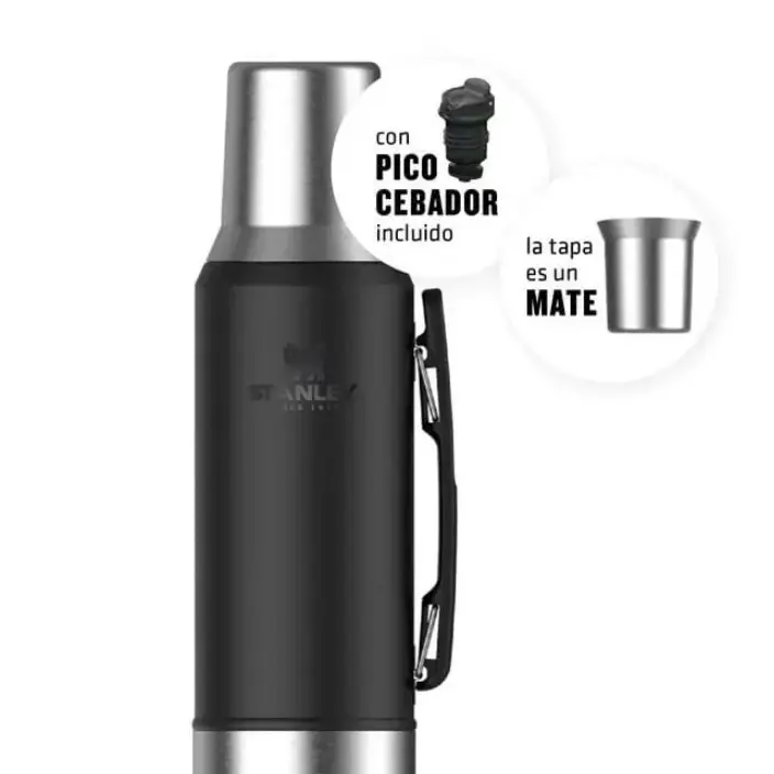 En Argentina, el mate es una bebida muy especial que se comparte en todo momento y lugar. Y para hacer que esta experiencia sea aún más especial, Stanley ha creado el Termo Mate System Classic 1.2 lts, el compañero ideal para disfrutar del mate en cualquier situación. Con tecnología exclusiva, este termo cuenta con un tapón de altísima precisión que permite una cebada perfecta con fluido continuo de agua en el lugar correcto. El tapón tiene la pendiente ideal para verter el agua directamente en el punto que desees. Además, la tapa de acero inoxidable se convierte en mate para que puedas disfrutar de tu mate en cualquier lugar. El Termo Stanley Mate System Classic 1.2 lts mantiene tu agua a la temperatura ideal, por lo que podés disfrutar de tu mate caliente o frío durante horas. Este termo está diseñado con la calidad y durabilidad que se espera de Stanley, lo que significa que puede durar muchos años de uso intenso y de disfrute, ya sea solo o acompañado. No lo pienses más y obtén el Termo Stanley Mate System Classic 1.2 lts para hacer que tu experiencia de mate sea aún más especial.