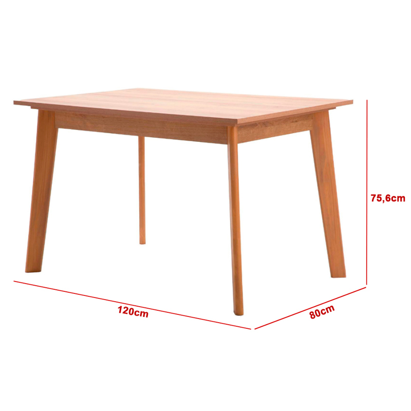 Elegante en su simpleza, esta mesa de comedor rectangular es ideal para ambientes modernos, nórdicos o minimalistas. Su estructura firme y patas levemente inclinadas le dan estabilidad y estilo al mismo tiempo.Perfecta para reuniones cotidianas, cenas íntimas o como mesa multiuso en cocinas y comedores. Su acabado en tono madera natural aporta calidez y armonía al ambiente, combina con sillas de madera, tapizadas o estilo escandinavo.Capacidad: Hasta 4 personas cómodamenteSe entrega desarmada, lista para armar sin complicaciones.Medidas:Ancho: 120 cm de largoProfundidad: 80 cm de anchoAlto: 75.6 cm de altoMarca: Muebles Gacela