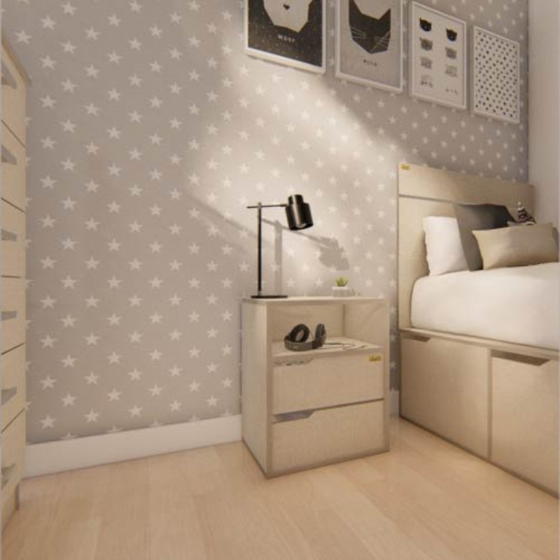Apoyás una botella de agua, una crema o una foto en su superficie, en el estante tus libros y, en sus cajones, podés guardar desde auriculares, lentes hasta ropa interior.