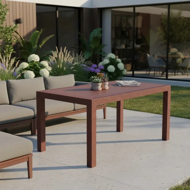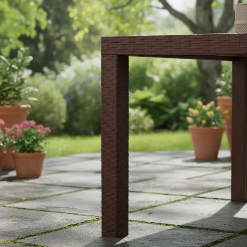 MESA DE JARDÍN PLÁSTICA SIMIL RATTAN 140x80x76 CM- PLÁSTICO ULTRA RESISTENTE¿Cansado de mesas de jardín que no resisten el paso del tiempo? Esta mesa premium es la solución definitiva para tu exterior, combinando durabilidad y estilo en un mismo diseño.CARACTERÍSTICAS CLAVE:Resistencia superior: Aguanta sol intenso, lluvia e incluso granizo sin deformarsePeso ligero (8 kg): Fácil de transportar y reorganizar según tu necesidadArmado rápido: Lista para usar en solo 5 minutosAgujero estándar para sombrilla de 4 cm: Protección solar inmediataTRUCO DE MANTENIMIENTO:Mantené tu mesa impecable por más tiempo con estos simples pasos:Limpieza semanal con agua jabonosaSecado con paño absorbenteAplicación de protector UV cada 6 meses (recomendado)BENEFICIOS EXCLUSIVOS:Bordes reforzados: Mayor estabilidad y soporteSuperficie antideslizante: Seguridad para tus vajillasPatas regulables: Se adapta a superficies irregularesGAMA DE COLORES:Blanco: Ideal para disimular residuos naturalesNegro: Resistente a marcas y rayones visiblesChocolate: Perfecto para entornos con vegetaciónACTUÁ RÁPIDO:Stock limitado disponible- No pierdas esta oportunidadCOMPLETÁ TU SET:Visitá nuestro perfil para descubrir las sillas que perfectamente combinan con este modelo