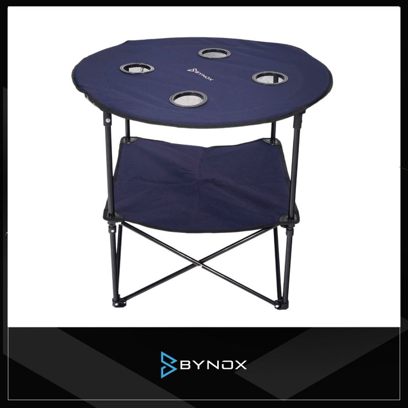 Mesa plegable de camping playa Bynox con posa vasos azul FI-MSPLBA-AZ