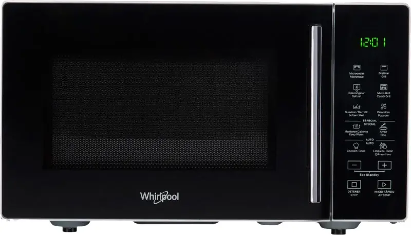 MICROONDAS 25L WMS25BS GRILL 25L WHIRLPOOL Mantiene los platos calientes de maneraautom¦¡tica por hasta 60 minutos. Variedad de recetas pre definidas, pasoa paso para cocinar rico y f¦¡cil. * El microondas limpio y libre de malos olores, en dos simples pasos. Funci¦nn grill para dorar los alimentos,creando un efecto crujiente o gratinado. Combinaci¦nn entre microondas y grill para gratinar distintos tipos de alimentos. Funci¦nn para derretir o ablandar, diferentes alimentos. Ideal para salsas o dips. Esta funci¦nn permite descongelar carne,aves, pescado y verduras. Pochoclos como en el cine para disfrutar en casa. Paso a paso para cocinar arroz de formar¦¡pida y f¦¡cil. Bloqueo de controles que ofrece protecci¦nn de encendido y seguridad infantil. Bot¦nn de acceso r¦¡pido que permite iniciar el horno microondas inmediatamente. Peso 14,5 Kg Dimensiones 48,3x28,1x 41,9(Ancho x Alto x Pronfudidad en cm.) Cantidad de programas 11 recetas Frecuencia 230/240v Voltaje 50Hz Eficiencia Energ¦+tica/Clase clim¦¡tica: B N¦° de Certificado Seguridad El¦+ctrica: DC-E-W2-387.1 Certificadora Seguridad El¦+ctrica: IRAM Potencia entrada nominal 1400 W Potencia salida nominal 900 W Potencia Grill 1050W Modelo WMS25BS Garant¦_a 12 meses Origen China