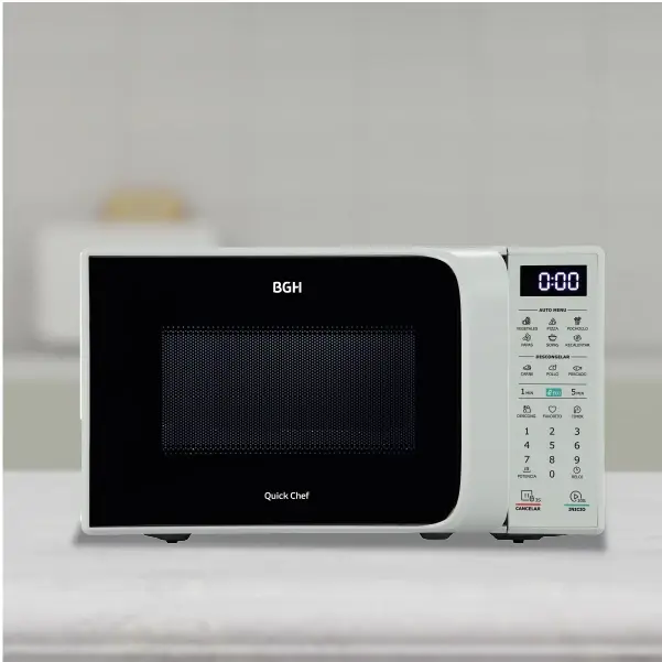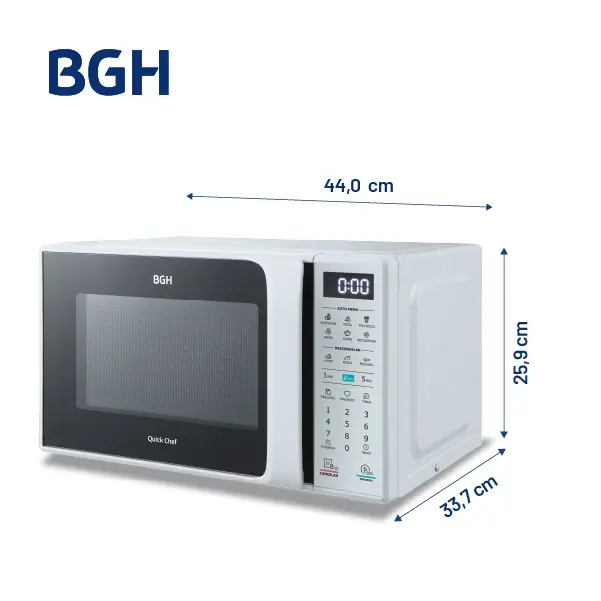 Microondas BGH 20 Litros Digital ECO B120DB20 Modo ECO Permite apagar automáticamente el display cuando el equipo no está siendo utilizado, reduciendo el consumo de energía y favoreciendo el ahorro eléctrico. Bloqueo para niños Al presionar “Cancelar” durante 3 segundos, el equipo se bloqueará automáticamente impidiendo el acceso a su panel, brindando mayor seguridad para los más pequeños. Cocción multietapa Permite programar distintas funciones de cocción de manera secuencial, como descongelar y luego cocinar, sin necesidad de reiniciar el equipo entre etapas. Descongelamiento por peso Con solo ingresar el peso del alimento, el microondas ajusta automáticamente el tiempo y potencia ideales para conservar la textura y sabor original de los alimentos. Inicio rápido Al seleccionar esta función, el equipo trabaja en la máxima potencia durante 30 segundos para calentar alimentos de manera rápida y eficiente. Auto menú Programas preestablecidos que permiten cocinar diferentes alimentos con solo presionar un botón, logrando resultados óptimos sin complicaciones. Diseño compacto Su capacidad de 20 litros y su moderno diseño en color blanco se adaptan a cualquier cocina, optimizando el espacio sin sacrificar funcionalidad. Iluminación LED Cuenta con luz LED interior que permite visualizar el proceso de cocción con mayor claridad y menor consumo energético. Garantía BGH La satisfacción de nuestros usuarios es nuestra prioridad. Por eso, los equipos cuentan con la garantía y todo el respaldo de BGH, la marca líder en electrodomésticos de Argentina, con 12 meses de garantía.