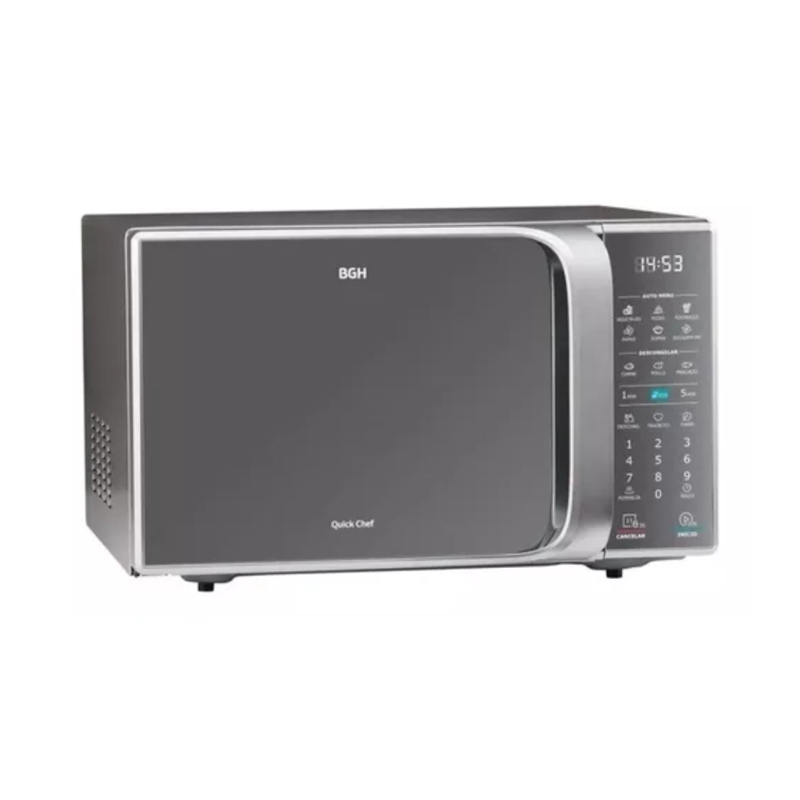 Caracteristicas: Capacidad total (comercial): 28L Tipo de producto: Bifunción digital Pintura de la cavidad: Gris Color exterior: Silver Terminación de la puerta: Espejado total (Mirror) Clase de eficiencia energética: B Control: Digital Display: Led Blanco Modo ahorro de energía (Modo ECO): Si Diámetro del plato de vidrio: 315 Luz interior: Led Voltage / Frequency: 220V/50Hz Consumo máximo (W): 1500 W Tipo de ficha: Ficha de 10A Potencia de entrada de microondas (W): 1500 W Potencia de salida de microondas (W): 900 W Potencia de Grill (W): 1000 Dimensiones (Ancho x Prof x Alto) mm: 520*435*326 Peso neto (Kg): 16