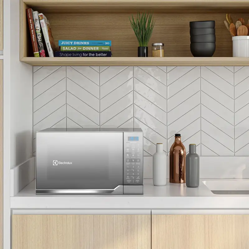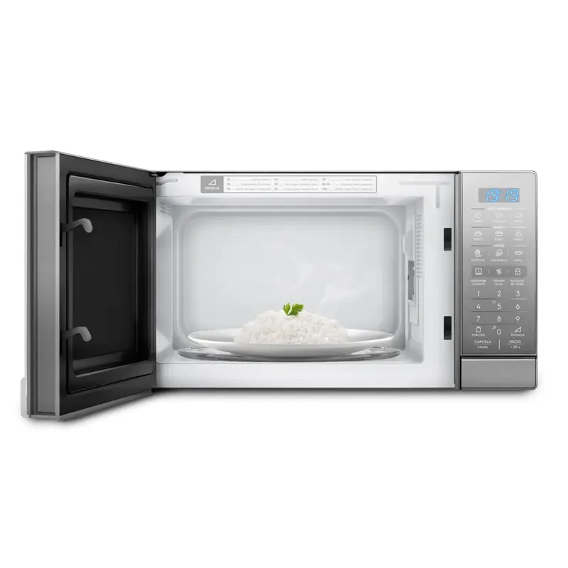 Conocé el Microondas Electrolux 25L Plata con Función Descongelar (EMDM25G5GSYG). Calentá, descongelá y prepará tus comidas con gran practicidad.