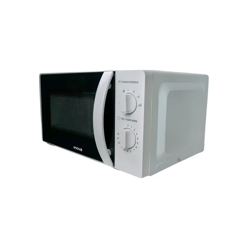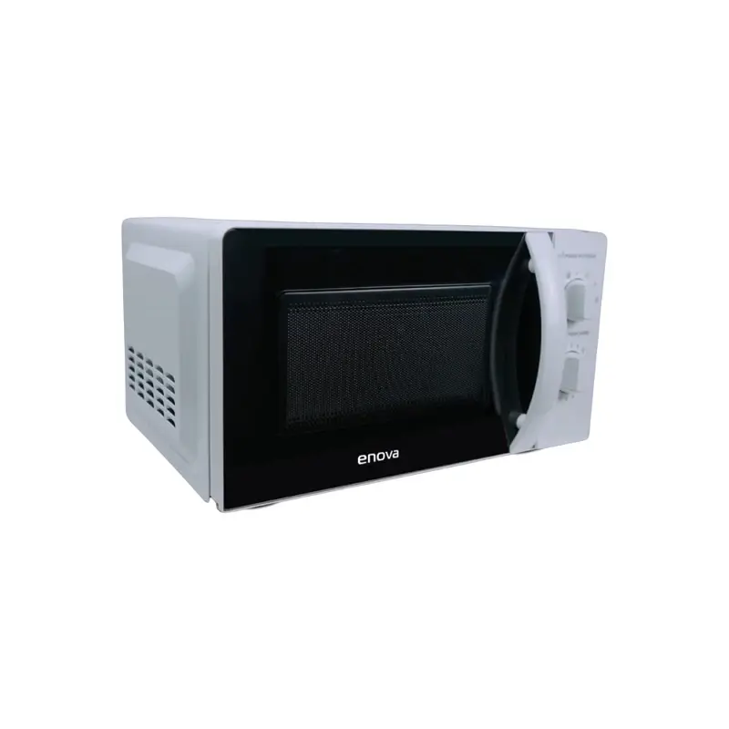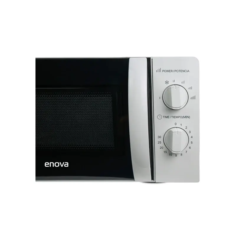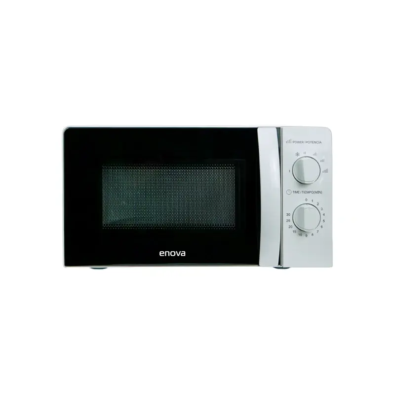 El microondas Enova de 20 litros es la solución ideal para quienes buscan practicidad y eficiencia en la cocina. Con un diseño moderno en color blanco y una puerta de vidrio transparente, se integra fácilmente en cualquier estilo de cocina. Su tamaño compacto de montaje sobre mesa lo hace perfecto para espacios reducidos, sin sacrificar funcionalidad.Cuenta con una potencia de 1100 W, ideal para calentar, descongelar y cocinar tus alimentos de forma rápida y uniforme. Su capacidad de 20 litros es perfecta para el uso diario, ya sea en el hogar o en una oficina.