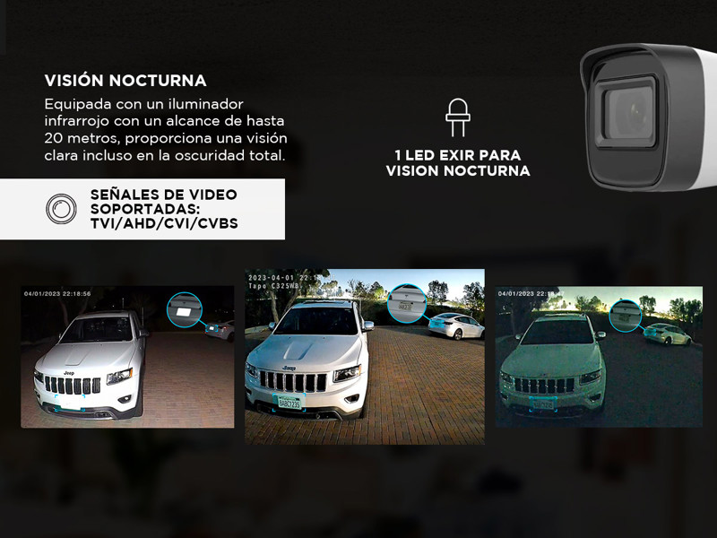 La cámara de seguridad exterior EXIR Bullet de 2MP es una solución confiable para la vigilancia de exteriores. Con un potente sensor CMOS de 2MP y un LED EXIR, esta cámara ofrece imágenes nítidas y claras tanto de día como de noche, con una visión nocturna de hasta 20 metros. Equipada con función ICR, esta cámara garantiza una transición suave entre el día y la noche, proporcionando una vigilancia continua en todo momento. Además, su sensibilidad de 0.02 Lux/F1.2 asegura una excelente calidad de imagen incluso en condiciones de poca luz. Con alimentación de 12 VDC y protección IP66 contra los elementos, esta cámara es adecuada para su uso en entornos exteriores exigentes. Además, su diseño compacto y lente ajustable de 2.8/3.6mm proporcionan flexibilidad en la instalación y un amplio campo de visión. La cámara de seguridad exterior EXIR Bullet de 2MP es compatible con una variedad de señales de video, lo que la hace ideal para integrarse en sistemas de seguridad existentes. Con Smart IR y DNR, esta cámara ofrece una vigilancia confiable y de alta calidad en todo momento. ¡Asegura tu propiedad con la cámara de seguridad exterior EXIR Bullet de 2MP y mantén la tranquilidad en todo momento! Especificaciones Sensor CMOS: 2MP Leds: 1 pcs Visión Nocturna: Hasta 20 metros Tipo: Exterior EXIR Bullet Función ICR: Sí Sensibilidad: 0.02 Lux/F1.2 Alimentación: 12 VDC Smart IR: Sí DNR: Sí Protección: IP66 Lente: 2.8/3.6mm Señales de Video Soportadas: TVI/AHD/CVI/CVBS