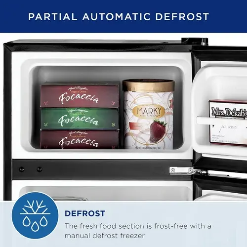 Cuidado fácil: el descongelamiento automático parcial permite que la sección de alimentos frescos permanezca libre de heladas mientras que el congelador requiere un descongelamiento manual