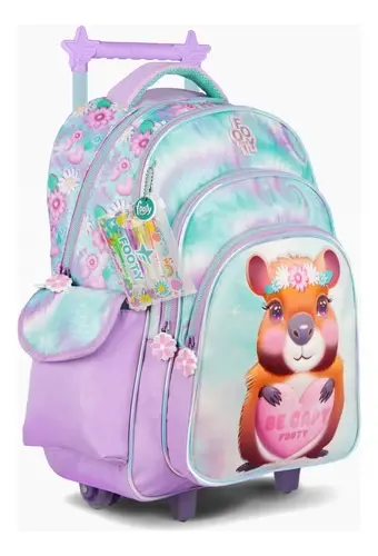 Mochila Carro 18 Capibara C/ Mini Lapiceras De Gel Capybag Lila Geométrico - FOOTY