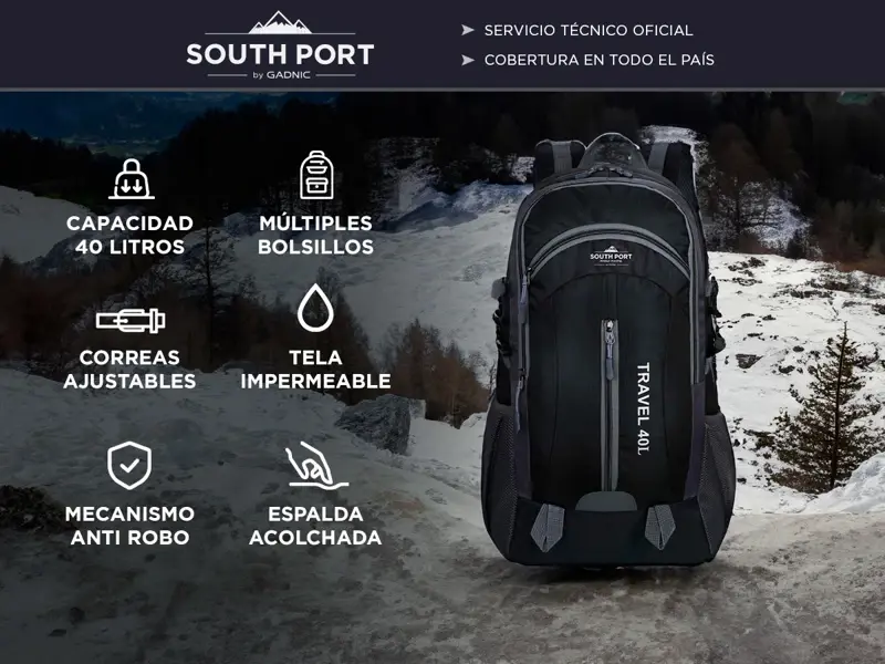 ¡Prepárate para la aventura con la Mochila de Camping South Port de 40 L! Si eres un amante de la naturaleza y ansías explorar nuevos horizontes, esta mochila ha sido diseñada pensando en ti. Nuestra Mochila de 40 L es la combinación perfecta de comodidad y durabilidad. Con un diseño ergonómico y acolchado, te ofrece un ajuste cómodo durante largas caminatas y travesías. Sus correas ajustables te permiten personalizar el ajuste para un transporte sin esfuerzo. ¿Listo para enfrentar cualquier clima? Esta mochila está confeccionada con materiales resistentes y repelentes al agua que protegen tus pertenencias en condiciones adversas. Explora la montaña, haz senderismo o lánzate a la aventura sin preocuparte por tus equipos. El espacio importa, y esta mochila lo tiene en abundancia. Con una capacidad de 40 litros, tienes espacio suficiente para llevar todo lo esencial y más. Sus compartimentos y bolsillos múltiples te permiten organizar tus pertenencias de manera eficiente, desde tu equipo de camping hasta tu botella de agua y dispositivos electrónicos. La versatilidad es clave. Ya sea que planees una excursión de fin de semana o unas vacaciones más largas, nuestra mochila se adapta a tus necesidades. Su diseño funcional incluye detalles como correas laterales para llevar una esterilla de yoga o una tienda de campaña, lo que la convierte en la elección perfecta para cualquier tipo de aventura. La Mochila de Viaje South Port te brinda la libertad de explorar el mundo mientras llevas tus pertenencias de manera cómoda y organizada.