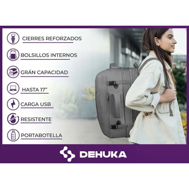 Mochila Impermeable De Viaje Con Cierres Reforzados Y Bolsillos Expandible Internos Carry On Dehuka B09 Gris