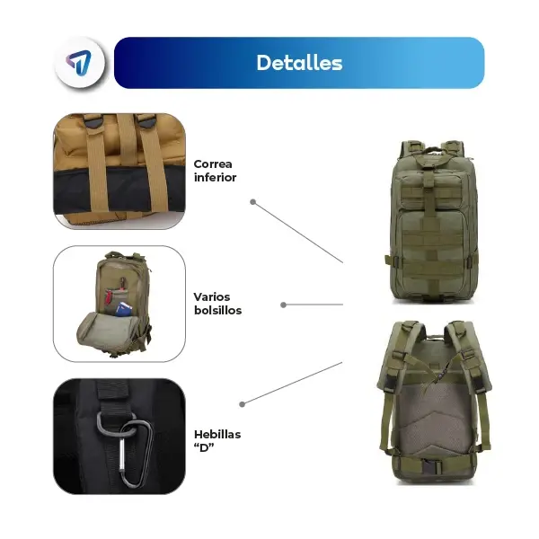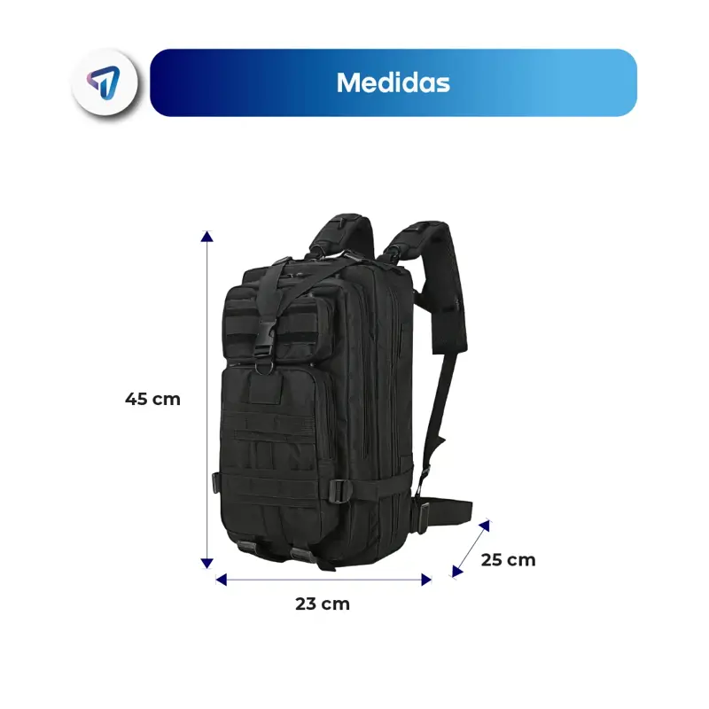 La mochila táctica WAGGS está diseñada para quienes buscan resistencia y funcionalidad en cada aventura. Con 30 litros de capacidad, cuenta con sistema MOLLE para personalizar su almacenamiento, correas acolchadas ajustables y respaldo transpirable para mayor comodidad. Fabricada con materiales duraderos, incluye compartimentos amplios, bolsillos frontales y laterales, correas de compresión y resistencia al agua. Dimensiones: 45x23x25 cm, peso: 1.2 kg. Ideal para trekking, camping y viajes, es tu compañera perfecta para cualquier desafío.