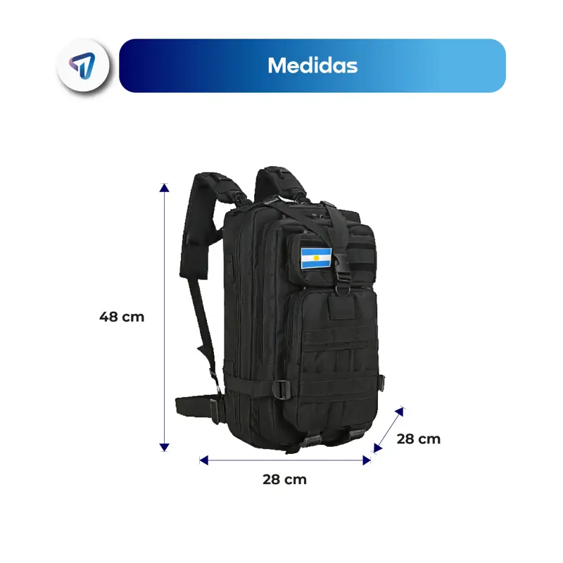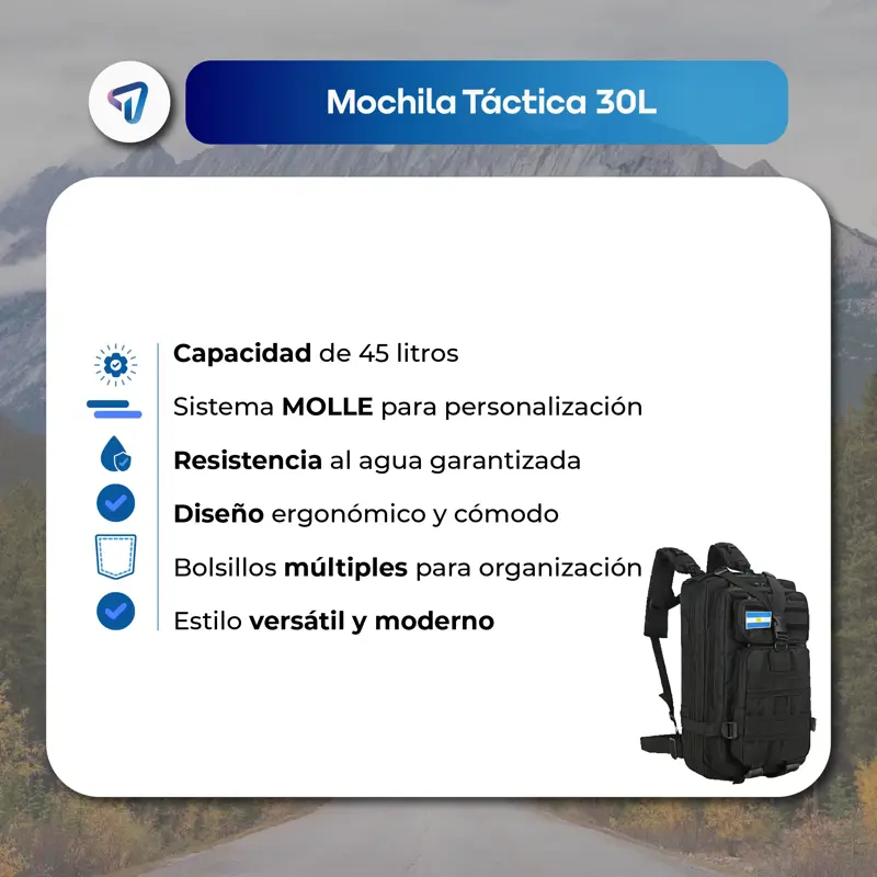 La mochila táctica WAGGS es tu aliada perfecta para trekking, camping, viajes y cualquier desafío. Con una capacidad de 45 litros, ofrece el equilibrio ideal entre almacenamiento y comodidad, asegurando que lleves lo esencial sin sacrificar el orden. Su gran capacidad permite transportar tu equipo completo, incluyendo una notebook de hasta 17 pulgadas. Fabricada con materiales duraderos, soporta condiciones climáticas adversas y terrenos exigentes. Su sistema MOLLE permite personalizar la mochila añadiendo bolsillos y accesorios según tus necesidades. El diseño ergonómico con correas acolchadas y ajustables junto con un respaldo transpirable garantizan comodidad en largas jornadas. Su organización inteligente incluye un amplio compartimento principal, bolsillos frontales y laterales para acceso rápido y orden. Sus dimensiones son 48 x 28 x 28 cm con un peso de 1.2 kg y cuenta con sistema de cierre por cremallera, resistencia al agua, tres bolsillos frontales, dos laterales sin cierre, correas de compresión laterales y espalda y tiras acolchadas. Prepárate para cada aventura con la mochila táctica WAGGS y experimenta el equilibrio perfecto entre resistencia y comodidad.