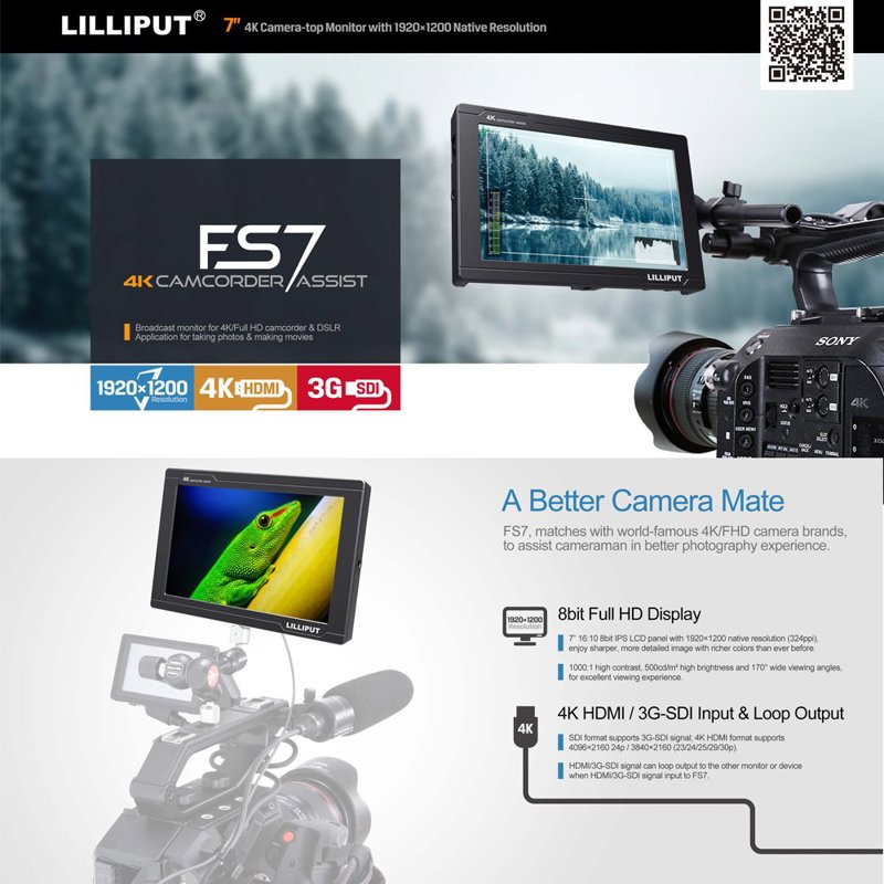 - El monitor Lilliput FS7 es un monitor panorámico de 7 pulgadas con entrada HDMI 1.4 4K con bucle continuo y entrada/salida SDI en bucle. Ubicado en un marco de metal sólido y con una gran cantidad de funciones y opciones de encuadre adicionales, le brinda un control superior sobre su flujo de trabajo, ya sea sobre el terreno o en el estudio