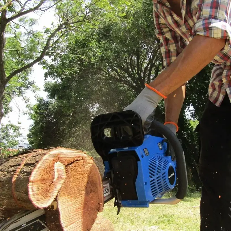 La motosierra Gamma G1851AR es una herramienta potente y fácil de manejar, ideal para el mantenimiento del jardín y el corte de troncos pequeños. Equipada con un motor de 52 cc y una potencia de 2,1 kW a 8500 RPM, ofrece un rendimiento eficiente y cortes precisos. Su espada de 20" (50 cm) permite un ancho de corte máximo de 100 cm, mientras que la cadena de 0,325" de paso y 0,050" de calibre garantiza un desempeño óptimo. Cuenta con lubricación automática, un tanque de combustible de 550 cc y un depósito de aceite de 260 cc, lo que prolonga su autonomía y reduce el mantenimiento. Su diseño ergonómico y un peso de 5,4 kg facilitan su uso, minimizando la fatiga del operador. Además, su velocidad en vacío de 2800 RPM y un sistema de encendido rápido optimizan el arranque y la eficiencia en el trabajo. Con la Gamma G1851AR, cada tarea de poda o tala se realiza con seguridad, comodidad y alto rendimiento.
