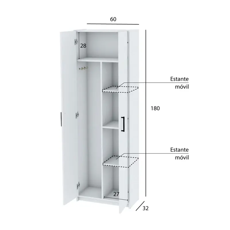 Mueble Organizador Despensero Escobero 2 Puertas 4 Estantes