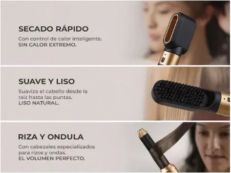 - Función: Secado + Rizado + Alisado + Modelado