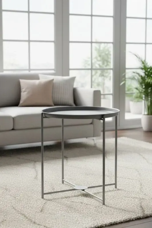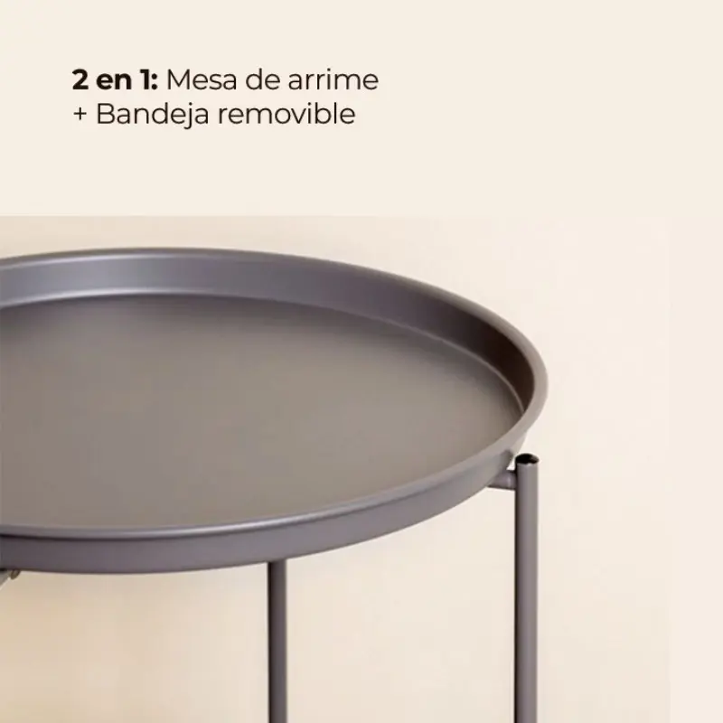 - Perfecto como mesita de noche, compañero de sofá o incluso mesa de patio. La bandeja superior extraíble puede funcionar como bandeja para servir aperitivos o bebidas. El montaje se puede realizar en minutossin herramientas Mesa de diseño de arrime Bandeja desmontable Fácil desarme para guardado Apta para interior y exterior bajo techo Material: Acero, ABS Acabado superficial: pintura especial anti rayones Color: Negro mate Dimensiones: 45.4 x 47.6cm (17.9 "x18.7")