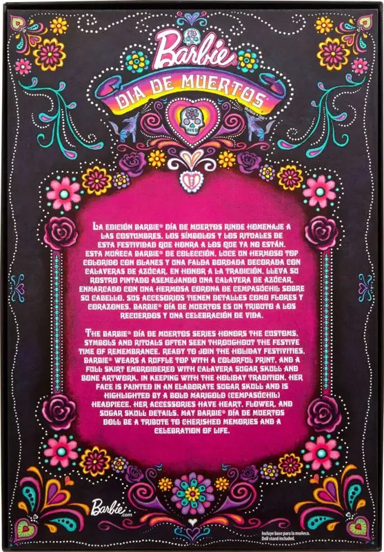 - La muñeca Barbie del Día de Muertos de 2024 viene en un paquete magníficamente ilustrado que es perfecto para exhibirla y regalarla. ¡Que traiga alegría a tu hogar mientras celebras los recuerdos de tus seres queridos!