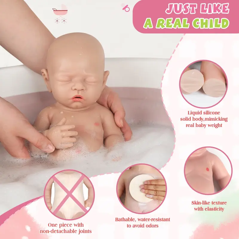 Fabricada con cuidado, el cuerpo completo está hecho de silicona de alta calidad que requiere un manejo delicado para mantener su suavidad y durabilidad. Las líneas de unión ligeras en la cabeza son parte del proceso de fabricación y no indican problemas de calidad. La muñeca es ideal no solo como juguete, sino también como un regalo considerado para diversos destinatarios, incluyendo niños, adultos que buscan alivio del estrés, personas con TDAH o autismo, personas mayores que viven solas, pacientes con Alzheimer y coleccionistas. Esta muñeca versátil combina realismo, suavidad y valor educativo, convirtiéndola en una compañera apreciada y un regalo perfecto para muchas ocasiones.