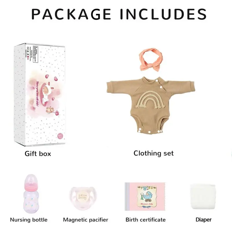 - Una delicia para abrir la caja: el paquete incluye 1 muñeca, 1 biberon, 1 chupete magnetico, 1 tarjeta de nacimiento y 1 juego de ropa como el de la imagen, todo ello presentado con elegancia en una caja de regalo.