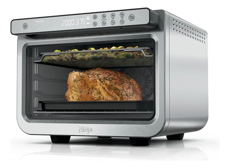 Capacidad XL de tamaño familiar: se adapta hasta 2 bandejas de horno de 9 x 9 hornea hasta 20 galletas, coloca y cocina 9 rebanadas de tostadas o 9 mitades de bagel en un estante, cabe hasta 12 libras. Pavo y permite hasta 8 libras. capacidad de freír al aire.