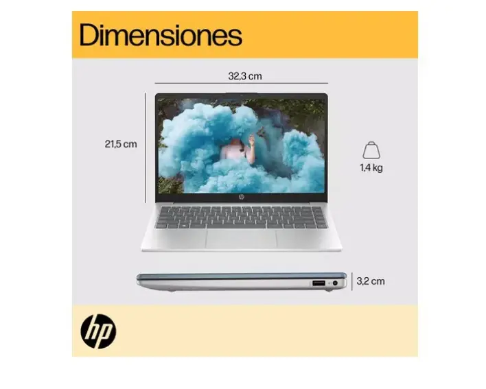 NOTEBOOK DE 14" FULL HD HP LAPTOP 14-EM0002LA CON WINDOWS 11 HOME AMD Ryzen 5 / 8 GB DDR5 / 512 GB SSD 7Y473LA La laptop HP de 14" te permite hacer más cosas con la potencia confiable de un procesador AMD®, además de amplio almacenamiento y potentes gráficos en un dispositivo elegante y cuidadosamente diseñado. Creada para llevarla dondequiera que te lleve el día y fabricada con plásticos reciclados de origen oceánico y posconsumo, es fácil mostrar algo de amor por el planeta. • HAZ LO TUYO A TU MANERA Conéctate fácilmente con las actividades del día a día. Desde sus herramientas colaborativas, sorprendente visualización, conexión rápida con WiFi6, amplio almacenamiento y procesador AMD®, hasta su diseño renovado el cual integra materiales reciclados y una cámara segura de alta resolución, harás libremente todo lo que quieras. • QUE TE VEAN Y ESCUCHEN CUANDO QUIERAS Permanece conectado sin preocupaciones gracias a la rapidez del WiFi6 y visualiza a los tuyos en una amplia pantalla hasta FHD de libre parpadeo. Las videollamadas con ellos serán de alta calidad, sin ruido exterior y con la privacidad que necesites al activar o desactivar la cámara y el micrófono. • TU LAPTOP PARA TODO EL DÍA Y TODO EL TIEMPO Ponte en marcha con la potencia del procesador AMD®, rápido almacenamiento SSD, conexión con los puertos que necesitas y batería de carga rápida que te ayudará a mantenerte activo durante más tiempo.