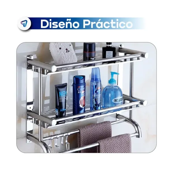 El estante organizador de baño WAGGS, fabricado en acero inoxidable con acabado cromado, combina elegancia y practicidad. Cuenta con una repisa superior para productos y un toallero inferior, optimizando el espacio de tu baño. Es resistente a la corrosión, soporta hasta 10 kg y se instala fácilmente en la pared con los accesorios incluidos. Con dimensiones de 40.2 x 39.5 x 14.6 cm, es ideal para mantener el orden y aportar un toque moderno a tu espacio. ¡Renueva tu baño con este práctico organizador!