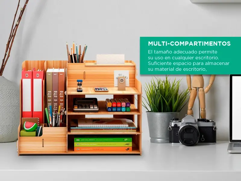 Con cuatro compartimentos de almacenamiento espaciosos, este organizador es perfecto para almacenar archivos, libros y otros documentos importantes. También es lo suficientemente grande como para contener algunos de tus objetos personales, como lápices, abrochadora, cinta y más.