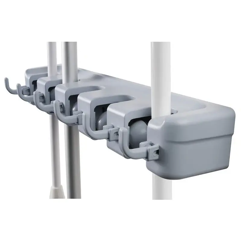 • Este modelo cuenta con 5 soportes de palos y con 6 ganchos adicionales para el trapo, pala, cepillo, o lo que quieras tener a mano!